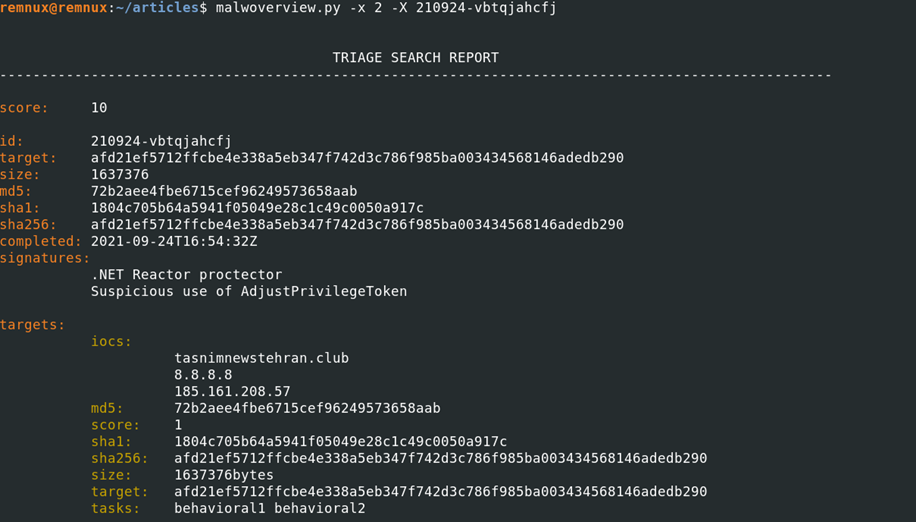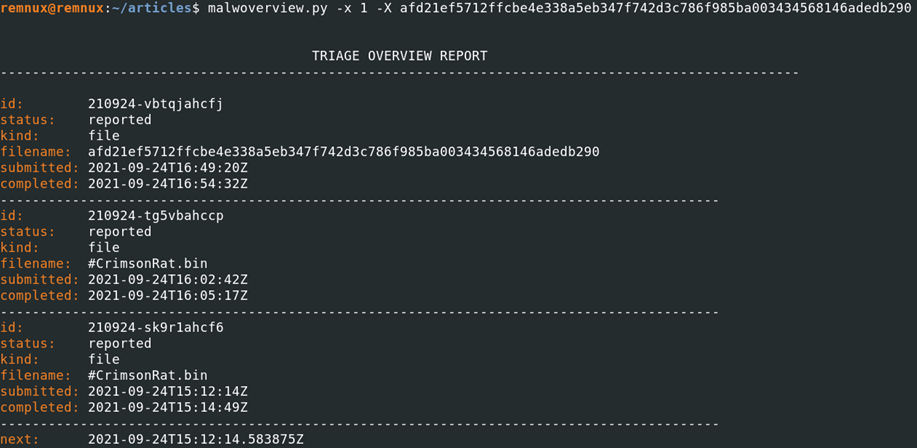 remnux@remnux:~/articles$ malwoverview.py -b 1 -B 59ed41388826fed419cc3b18d28707491a4fa51309935c4fa016e53c6f2f94bc