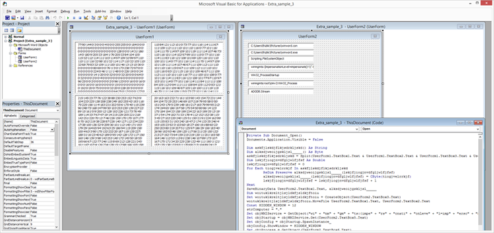 Additionally, there’s a catch: according to last figure, this object has 4 parts (UserForm1.Text1, UserForm1.Text2, UserForm1.Text3 and UserForm1.Text4), so we should dump it into a file (dump1), edit and “join” all parts.